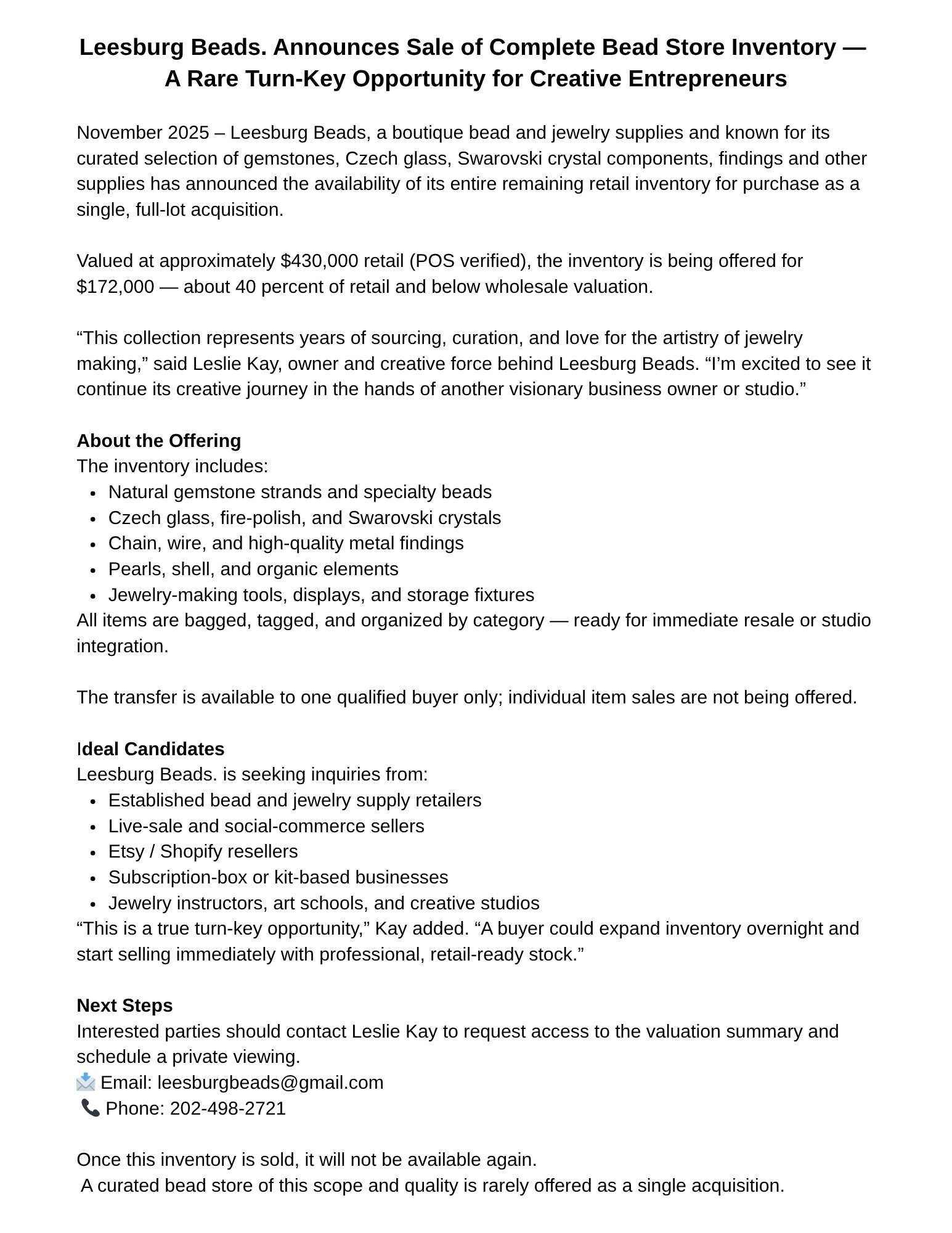 Leesburg Beads and Studio is a fun, inviting venue where you can learn and hone a wide variety of jewelry making skills and techniques. We offer a panoply of classes taught by the best instructors from around the country! We offer award-winning in-person classes, parties, and events!